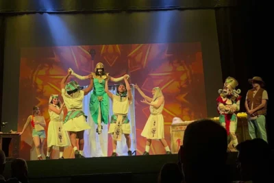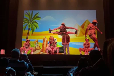Una aventura con temas musicales originales que se unen a los de la película con impresionantes voces en directo y una puesta en escena totalmente innovadora a través de vídeo mapping acompañada de actores, cantantes y bailarines que le harán sentir en vivo la última aventura de Tadeo Jones en busca de la mesa Esmeralda.
