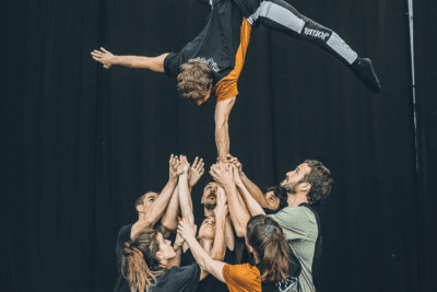 La fuerza del grupo y las posibilidades que abre la unión entre individuos para dar paso al colectivo es el centro de Tenet, una propuesta de circo centrada concretamente en los portes acrobáticos.