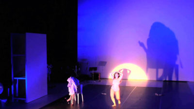 La pieza está construida en base de capas que se sobreponen y confeccionan el retablo que da forma a Les Stripteases de Aidi Eisidi; parte de un preludio lúdico, aparentemente ingenuo, que nos adentra en un territorio en el que es posible todo: la crueldad infantil, el doble juego del lenguaje… A continuación se proyectan los cuerpos, se hacen grandes y se distorsionan, se nos revelan descomunales en su tamaño de Dioses. Los actores juegan con nosotros, nos rodean, consiguen seducirnos para pasar a ser parte activa del juego. Ellos siguen en solitario y transitan por la instalación, nosotros nos convertimos en voyeurs con toda la fuerza impulsora que esto compuerta.