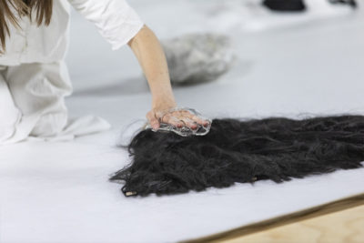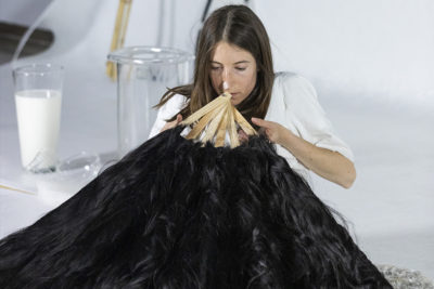 El artista barcelonesa Julia Mariscal presenta una instalación escultórica dentro de un espacio escénico que irá activando durante la performance, construyendo así una narrativa.